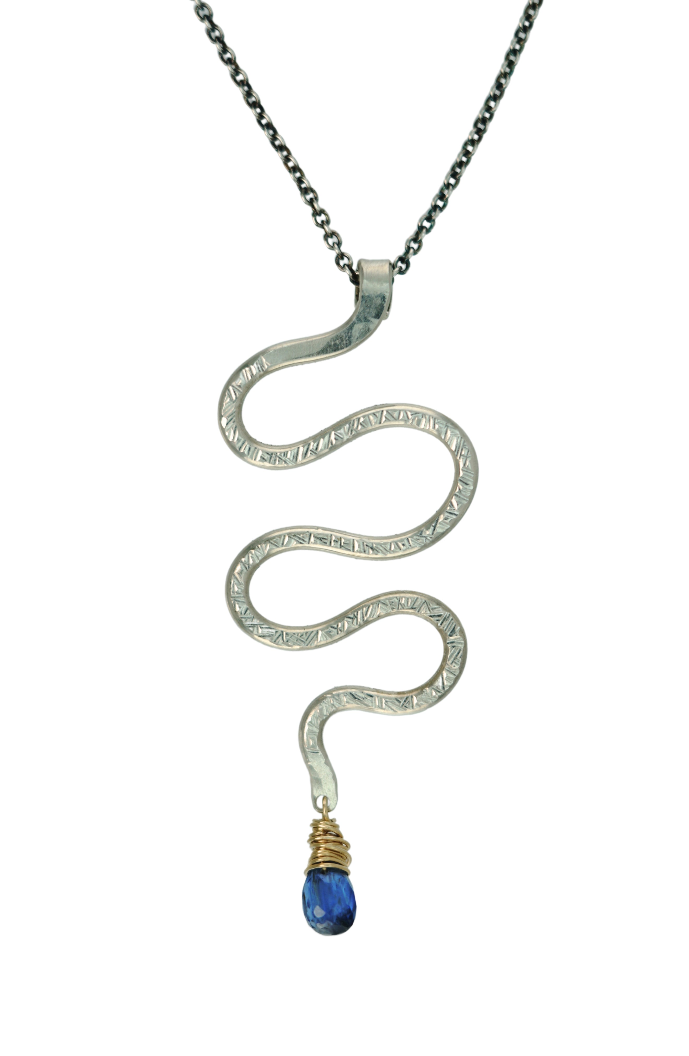 A continuous line that twists and turns, the serpent has long symbolized transformation, rebirth, and hidden knowledge. This piece is hand forged in 14k gold fill, textured with subtle marks that recall ancient pattern work. It’s a quiet emblem of power, worn close to the skin.